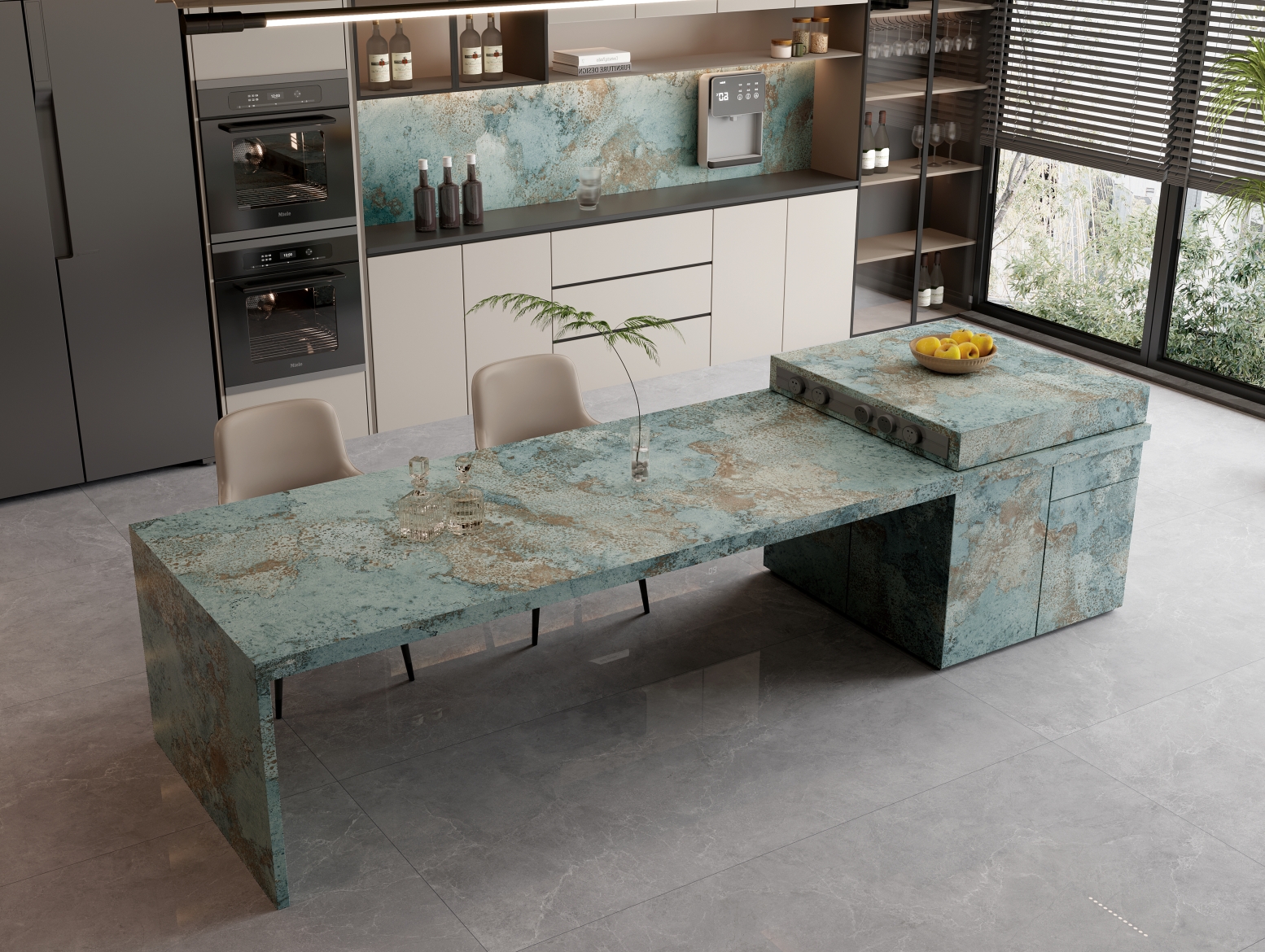 似將春日綠野盛景封印其中。翠色欲滴的鮮活色調(diào),與靈動變幻的自然紋理交織,鋪陳開來,仿若踏入蔥郁且神秘的生態(tài)奇境,讓每一寸空間都盈滿清新蓬勃與悠然詩意。