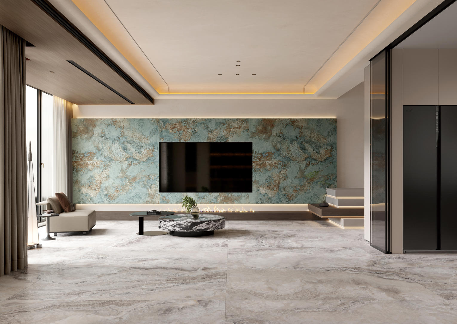 空間應用:酒店大堂、背景墻等高端場所;室內(nèi)墻面/地面,客廳、餐廳、廚房、臥室衛(wèi)生間、陽臺、玄關、過道等