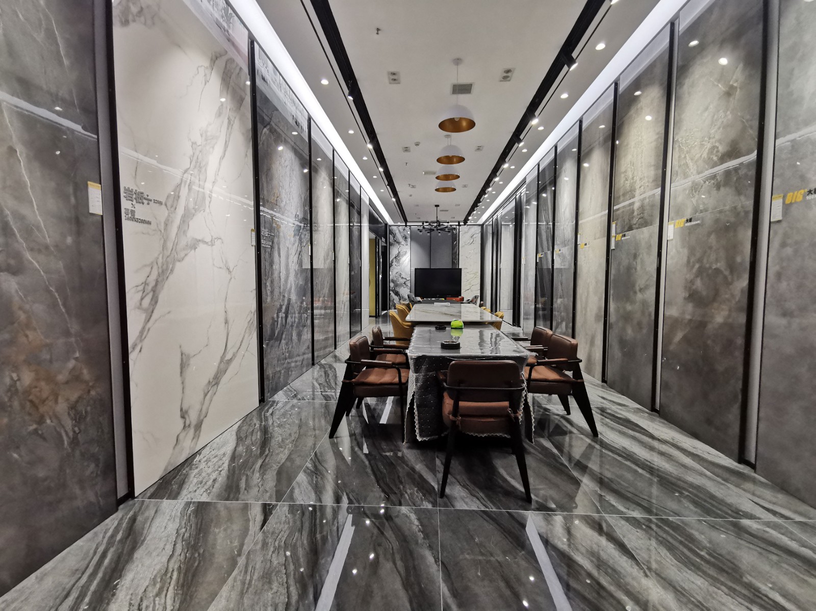 本次培訓(xùn)會由全員參觀全新打造的西渡店展廳為序章,QD巖板、連紋背景墻、木紋磚等QD瓷磚全新產(chǎn)品悉數(shù)呈現(xiàn)。大規(guī)格、高級灰、細節(jié)感、全新空間展示,從紋理、品質(zhì)到視覺、觸覺,獲得現(xiàn)場經(jīng)銷商的大加贊賞。