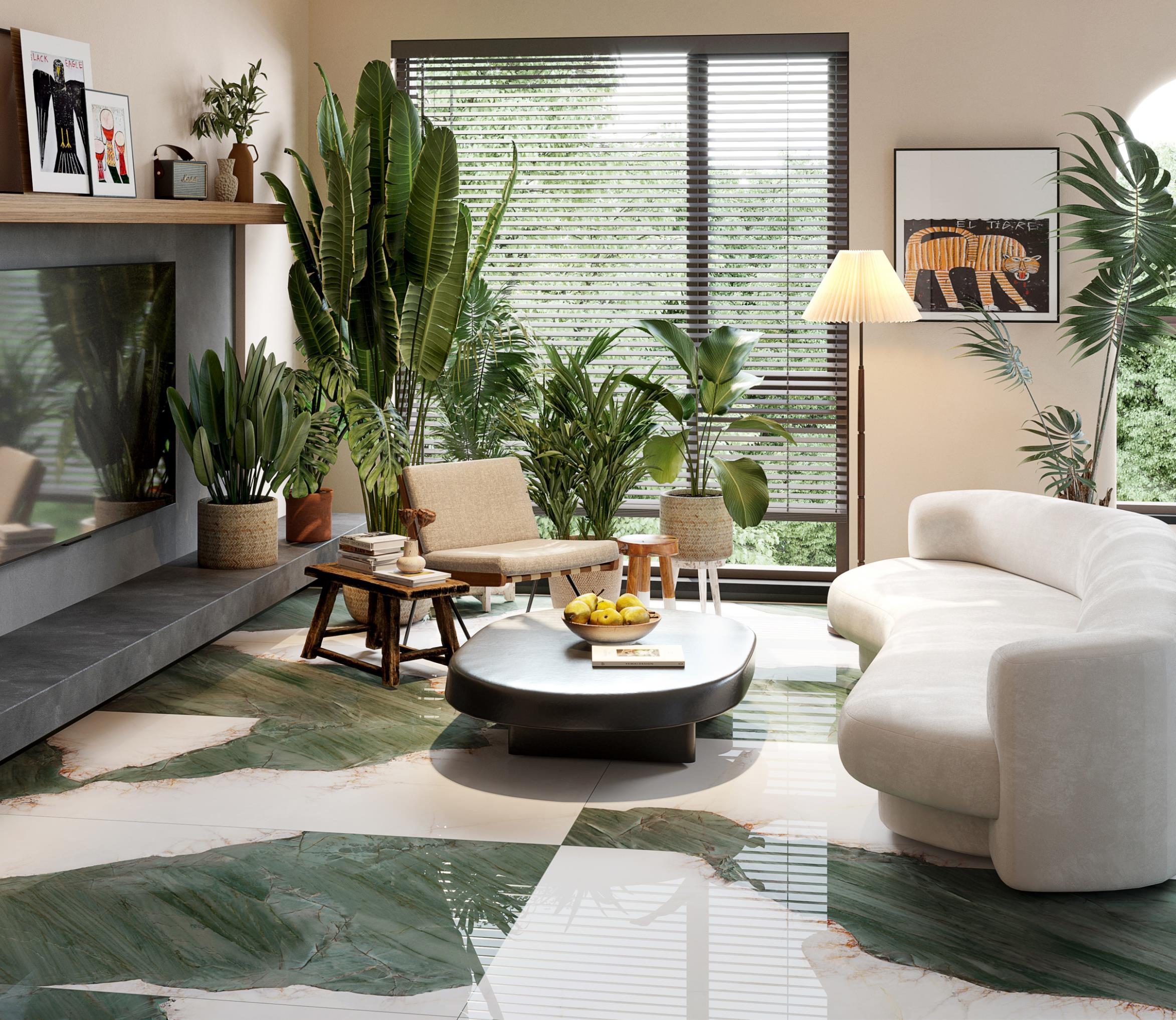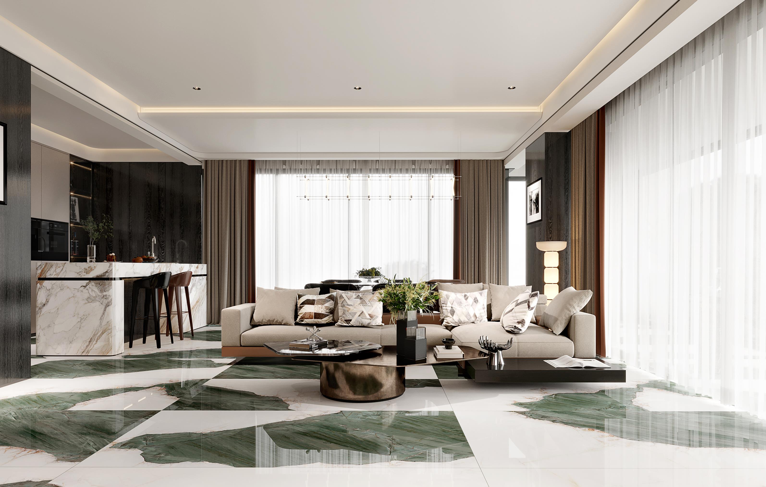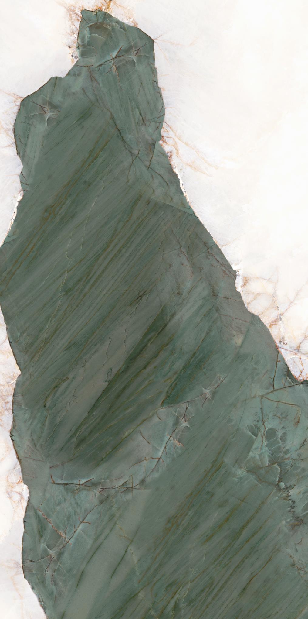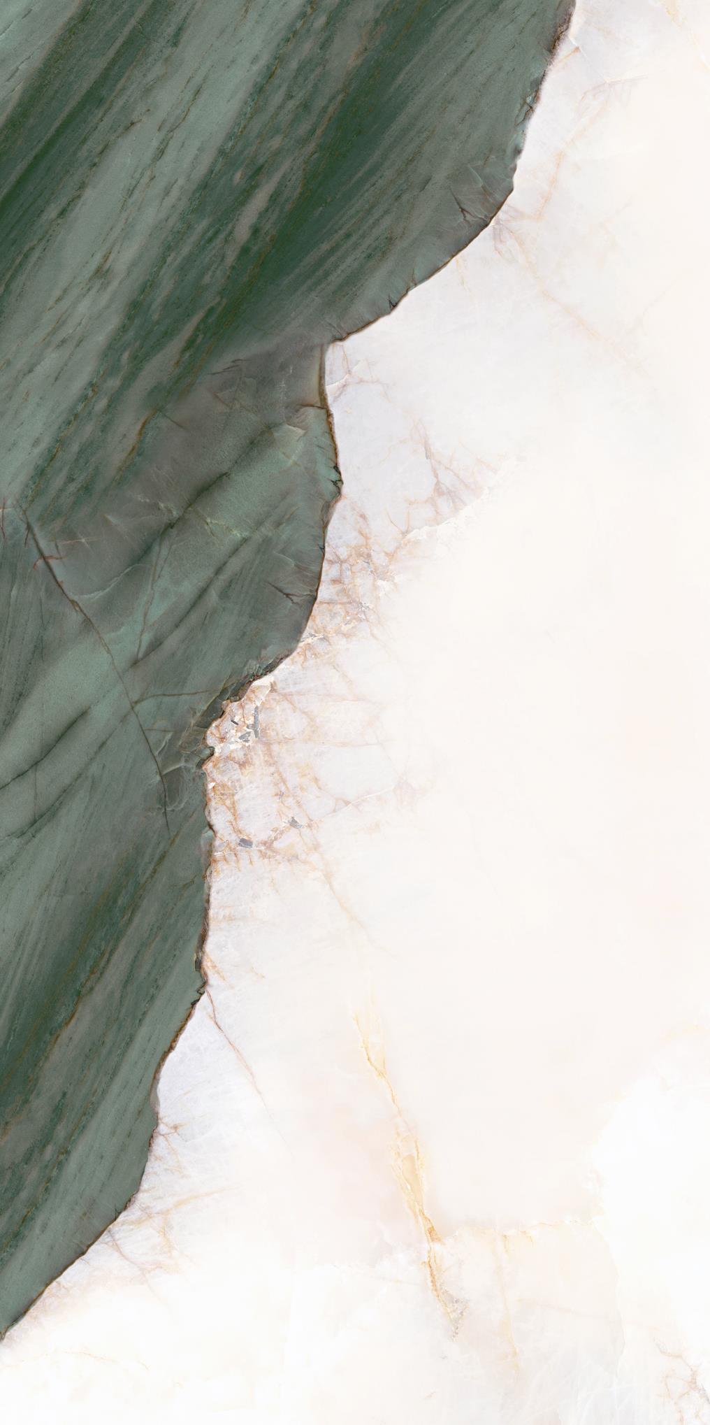 源于安第斯山脈上的珍罕寶玉。高飽和度的綠色基調(diào),勝似哥倫比亞祖母綠,蜿蜒的紋理,宏如萬頃碧波浩蕩之勢;肆意延伸的暖色紋理,似冰似玉且溫凈無瑕,有凝靈透徹之感。渾然天成的通透美感散發(fā)出與生俱來的高貴,寓意祥瑞降臨、地位尊崇的象征,更為空間平添幾分生機盎然。