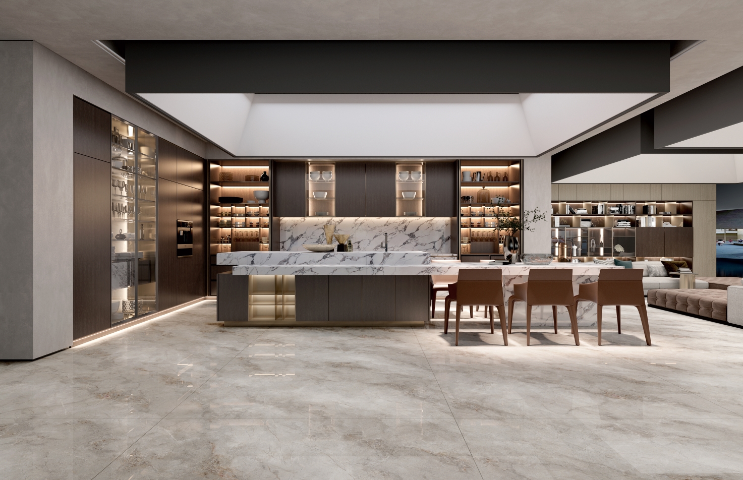 繾綣靈動的紋理,深淺灰線條的自然游動,鎏金褐色線紋點綴其中,與空間相得益彰,傳達(dá)出匹配現(xiàn)代極簡的調(diào)性美感。(任意無限連紋)