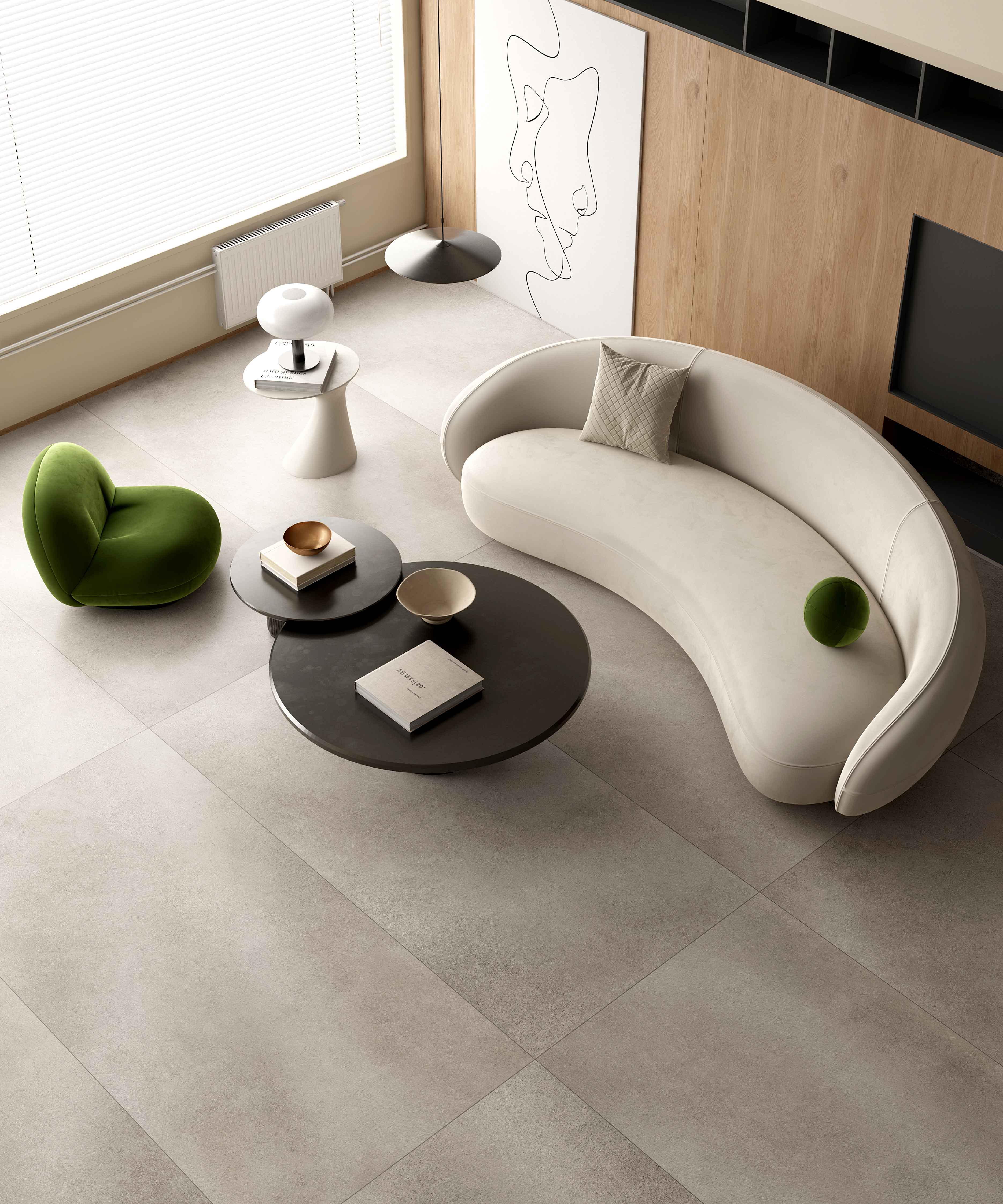 水泥磚為設(shè)計(jì)藍(lán)本,融合細(xì)膩柔和的鹿毛為特點(diǎn),自帶格調(diào)美感和神秘感。部分紋理作高光處理,令設(shè)計(jì)更生動(dòng),整體空間低調(diào)內(nèi)斂而不失細(xì)節(jié)。